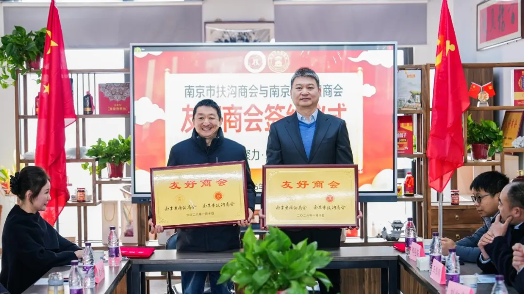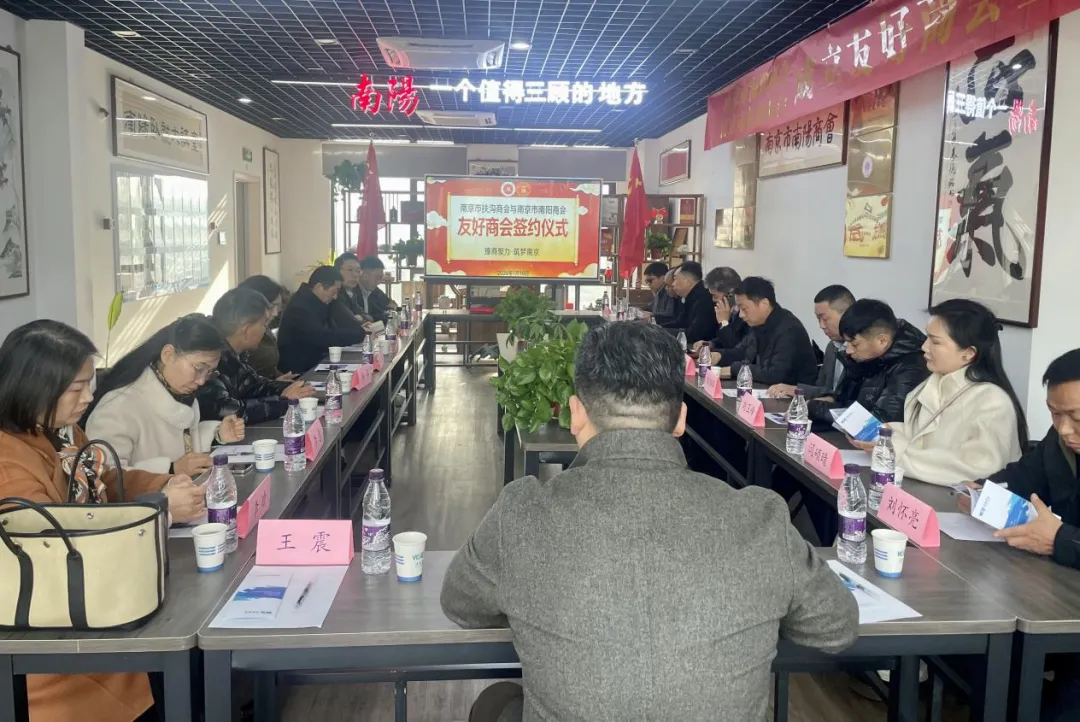 岁序更迭,情谊愈浓。为深化商会协作、凝聚乡贤力量、拓宽合作渠道,2026年1月10日,南京市扶沟商会与南京市南阳商会缔结友好商会签约仪式在南京市南阳商会卧龙大讲堂隆重举行。两地商会领导、企业家代表齐聚一堂,共叙乡情友谊,共商发展大计,共同见证这一意义非凡的时刻。上午9时许,南京市扶沟商会会长宋永伟、执行会长梁保峰,副会长刘卫锋、邵登高、王银领、李应全、宋阳辉、刘怀亮、王忠义、闫硕晴,秘书长刘红良;南京市南阳商会会长曲鹏、常务副会长王双庆,副会长岳香、王雷、杨洋、史小兵,秘书长李雪、执行秘书长李惠、理事李晗、联络秘书王震、刘盼玥,先后抵达活动现场签到入场。现场暖意融融、交流热烈,乡音乡情交织,处处洋溢着携手共进的浓厚氛围。众人畅谈企业发展现状,分享行业优质资源与前沿信息,为双方后续深化交流合作奠定了坚实基础。
