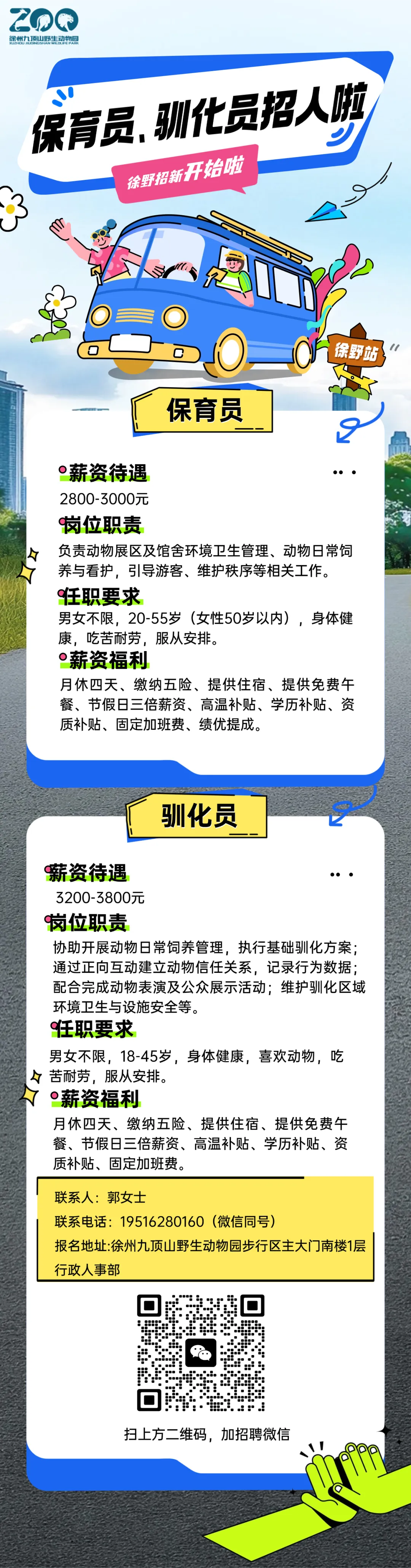 >【徐州招聘】徐州九顶山野生动物园年前招聘啦~