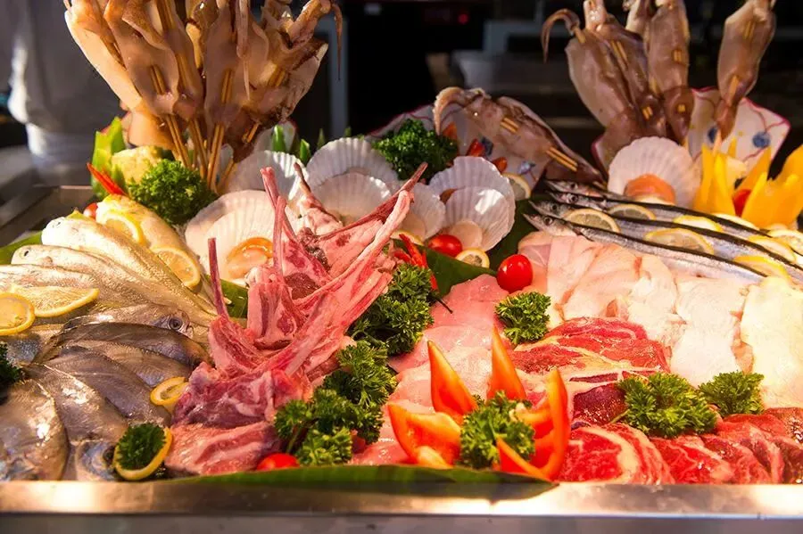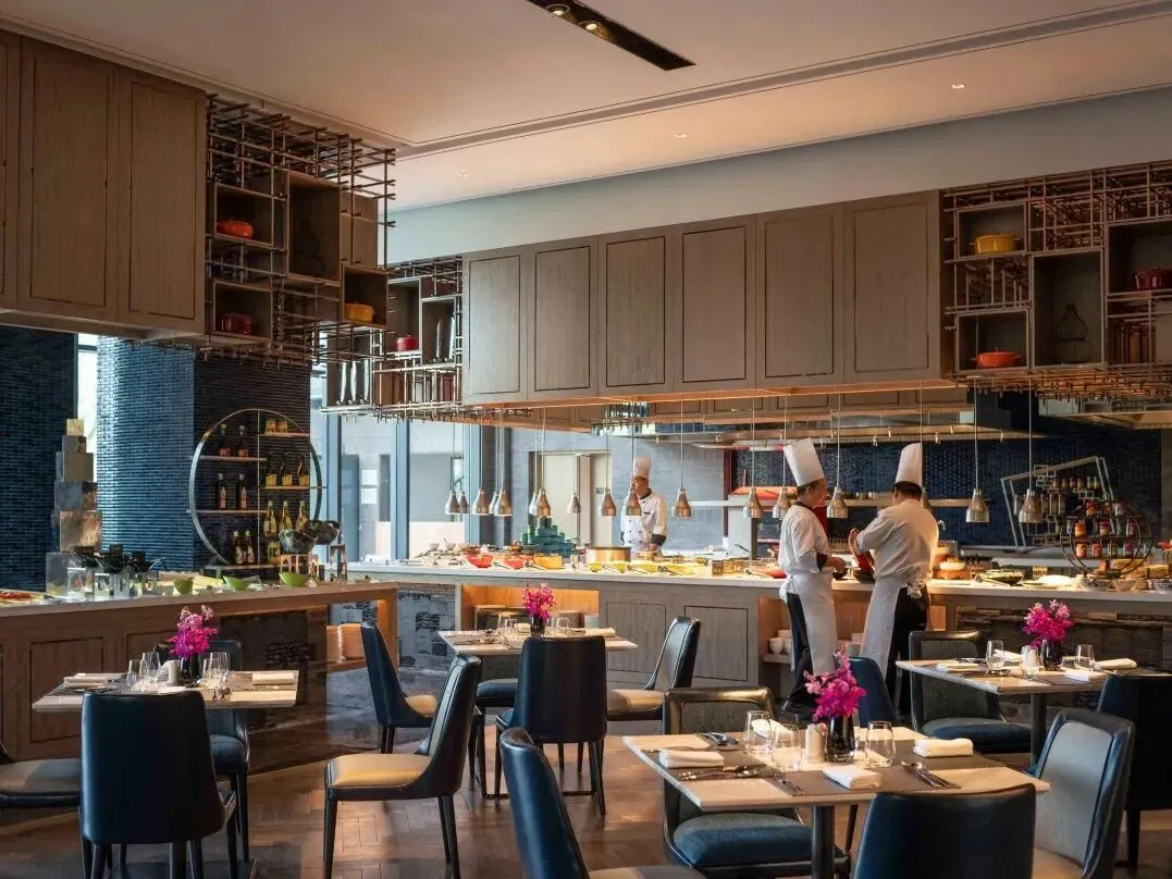 1楼珍珠咖啡厅,名字源于相城区自古闻名的珍珠。这里主打法餐和海鲜的自助晚餐,南美甜虾、雪蟹腿、青口贝等海鲜琳琅满目,任你畅吃。此外,还有中式传统粤菜、苏式菜肴,以及明档烧烤、披萨等风味美食,更有现场派送,为你的味蕾带来一场环球旅行。