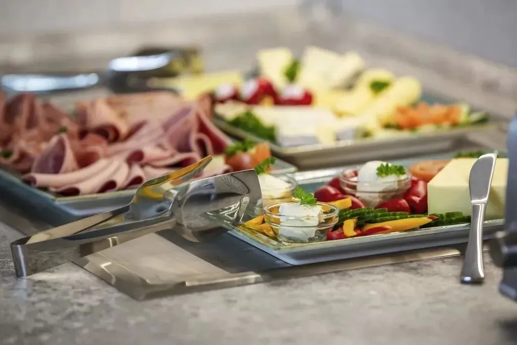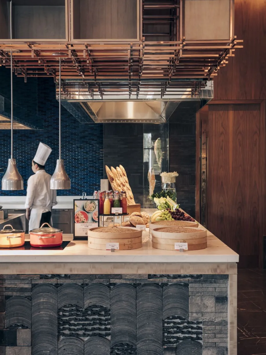 酒店自助早餐也是中西式结合选择很多,各类色拉、面包西点、谷物牛奶、现煮面条...总能在这里找到你爱的。