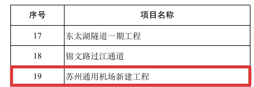 其中苏州通用机场新建工程在列