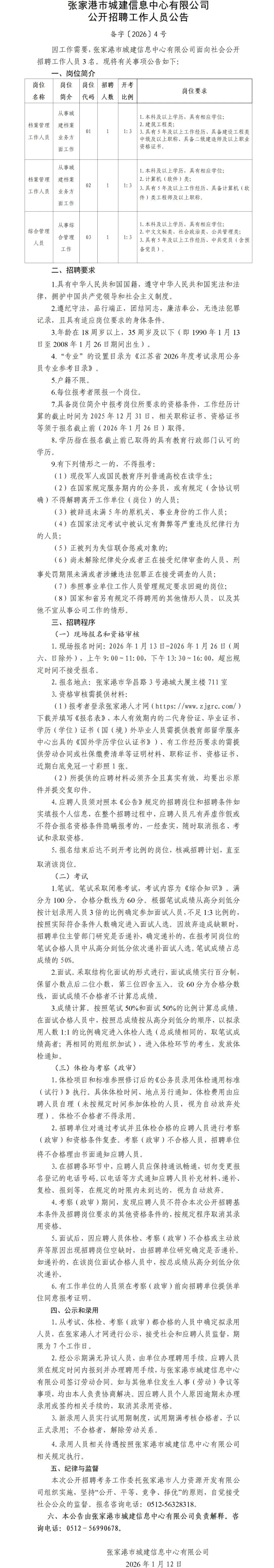 【声明】本公告来源于“张家港人才网”,由“苏州考聊事业单位考试”公众号整理编辑,仅用于学习交流目的,若涉及侵权和错误信息,请扫描上方二维码联系予以更改或删除。