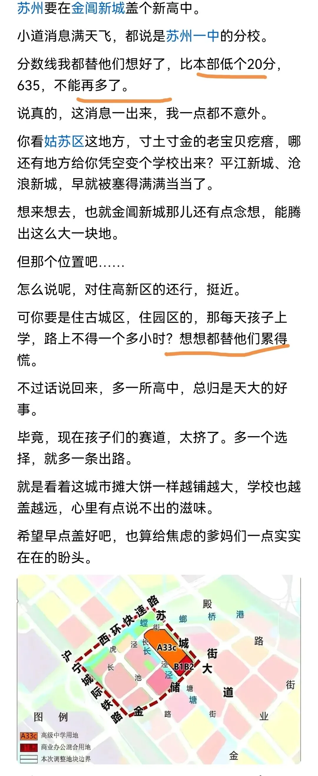 重磅利好!苏州姑苏区新建一所高中,大概率是市一中分校.