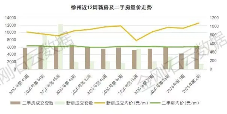 据金刚石数据显示,1月5日-11日徐州二手房成交约600套,环比前一周上涨约50%,二手房市场"以价换量",卖得火爆。