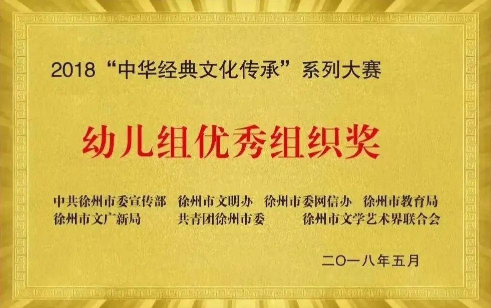 幼儿园锐意科研创新,课题研究结硕果,内涵发展添动力。自“十二五”以来,幼儿园共有3项省级规划重点课题、8项市级规划课题、30多项市级个人课题结题,2025年度再立一项省级重点课题和获评一项市级内涵发展项目。先后荣获“江苏省教科研先进集体”“徐州市教育系统先进集体”“徐州市学前教育先进集体”“徐州市融合教育示范园”“徐州市依法治校示范园”“徐州市优秀平安校园”“鼓楼区教育系统先进集体”“鼓楼区十佳幼儿园”“鼓楼区师德建设先进集体”等称号。