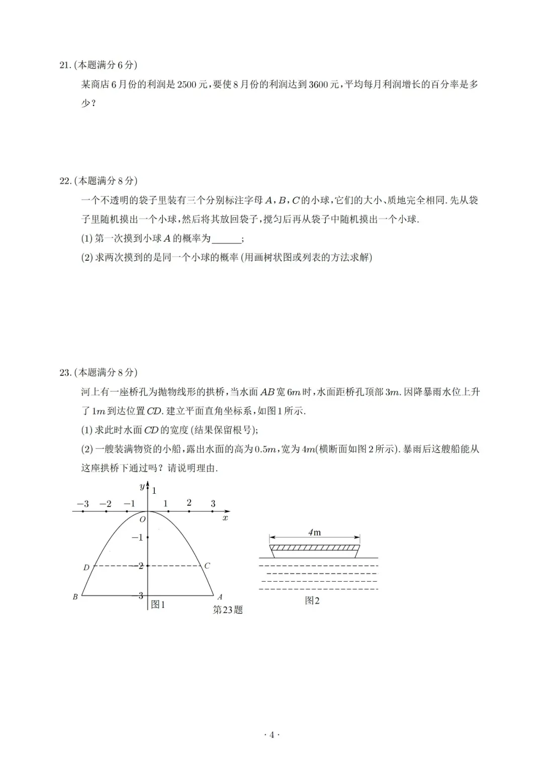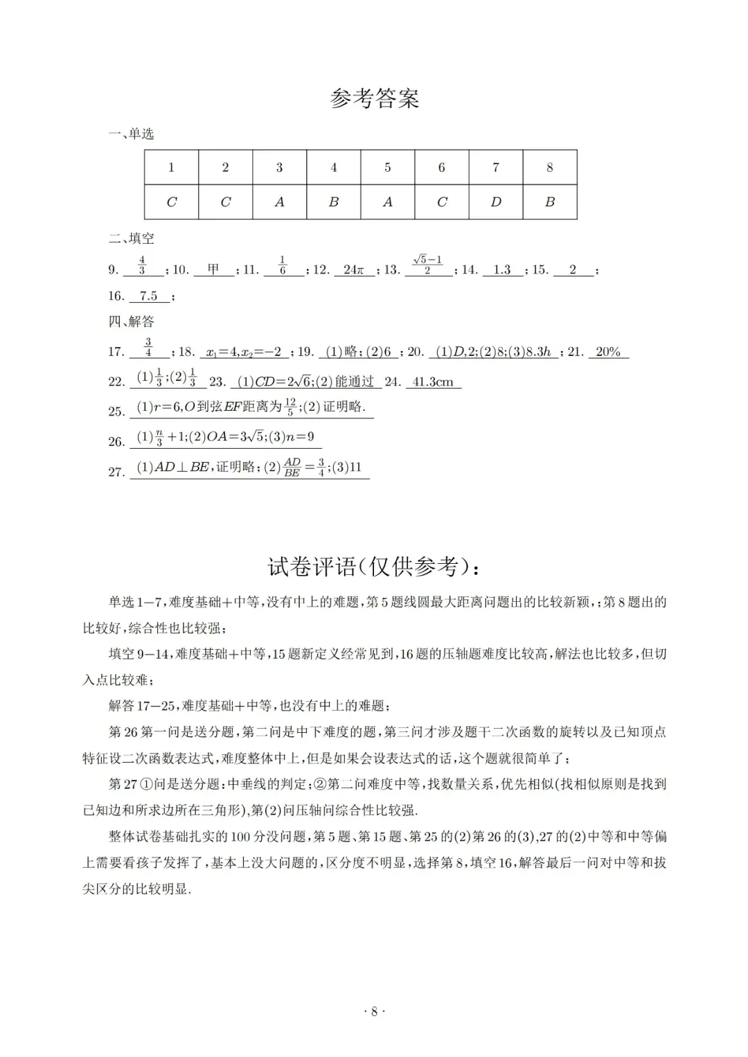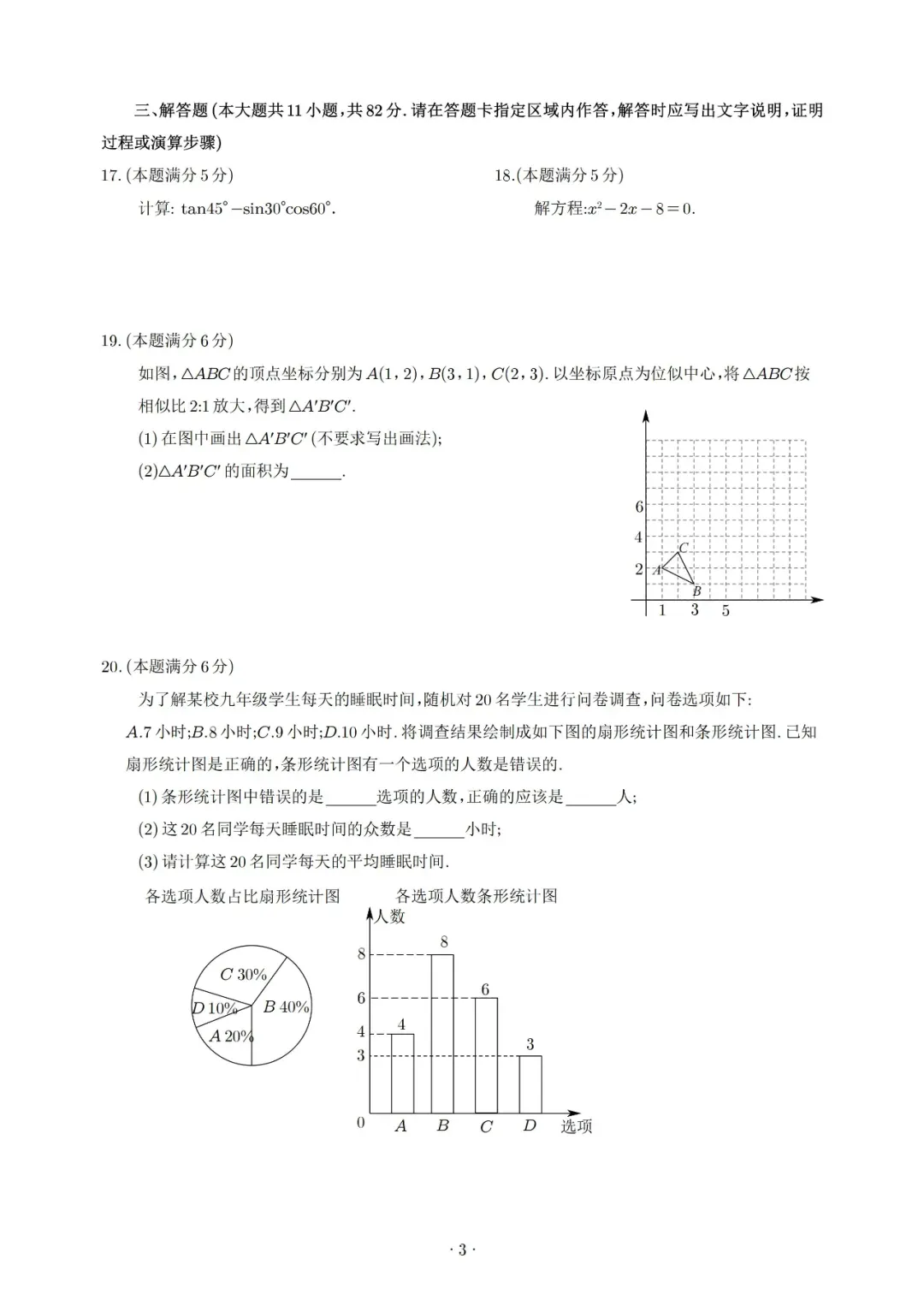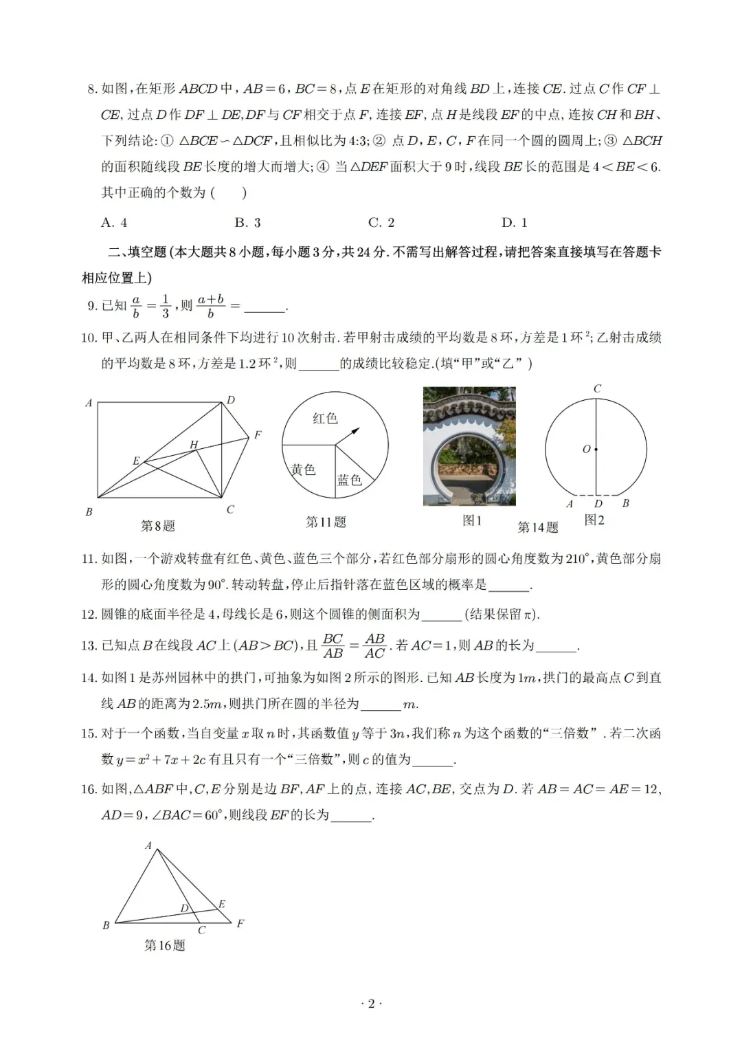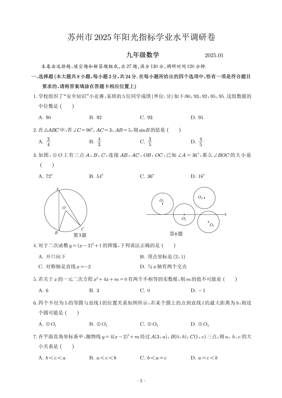 >2024-2025苏州六区初三上学期期末阳光调研数学试卷+答案(2025.1)