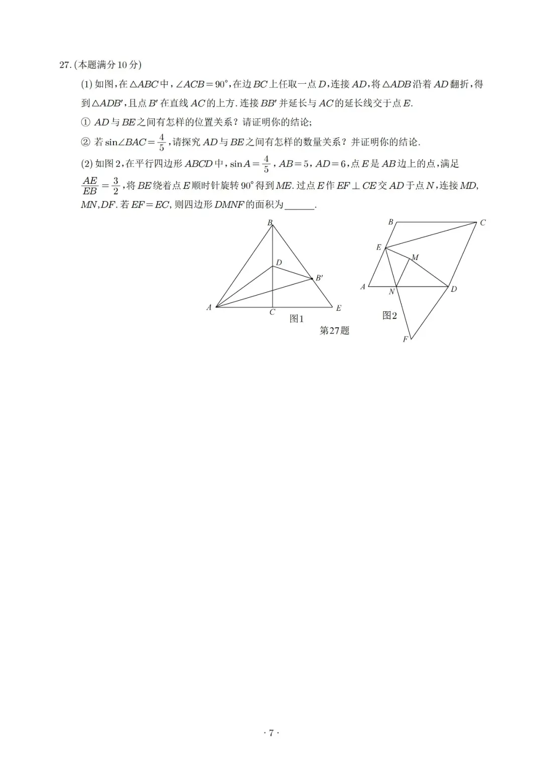 2024-2025学年苏州市六区期末初三阳光调研试卷(含答案)