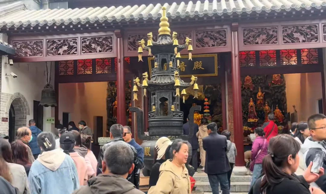 进入大院整个寺院香火旺盛,尤其在供奉着那尊传奇玉带观音的大殿前,很多人来此上香,想必是求子的吧!