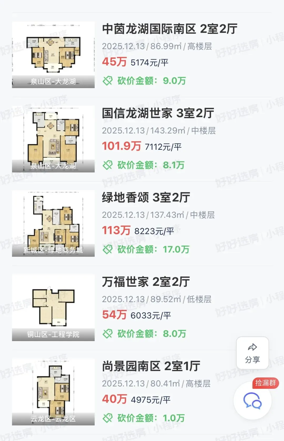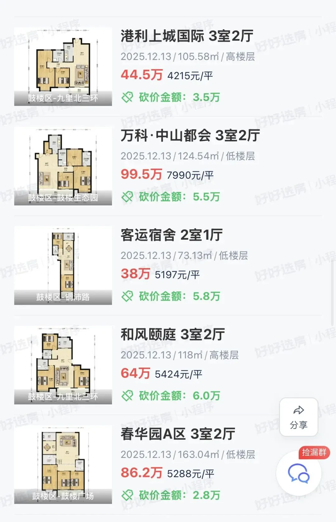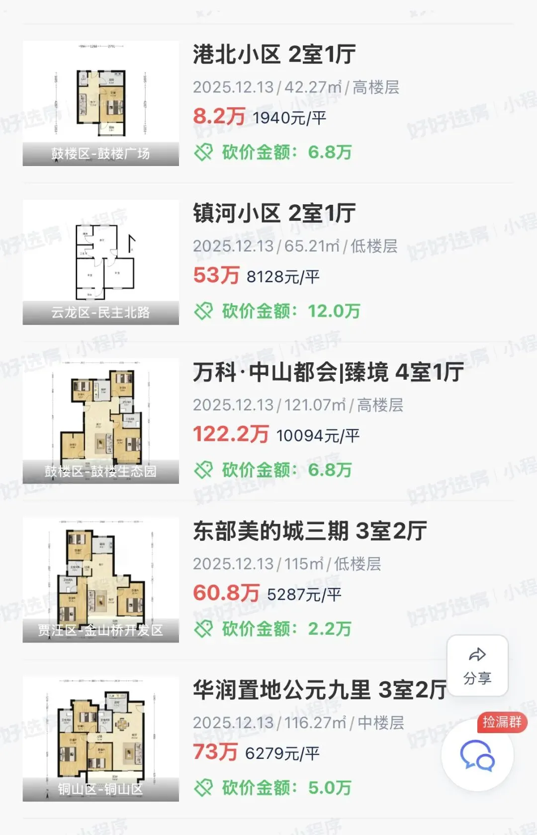 徐州二手房2025.12.13成交39套!美的天誉0.59万!荣盛花语城0.56万!融创淮海壹号0.82万!海尔滟澜1.27万!