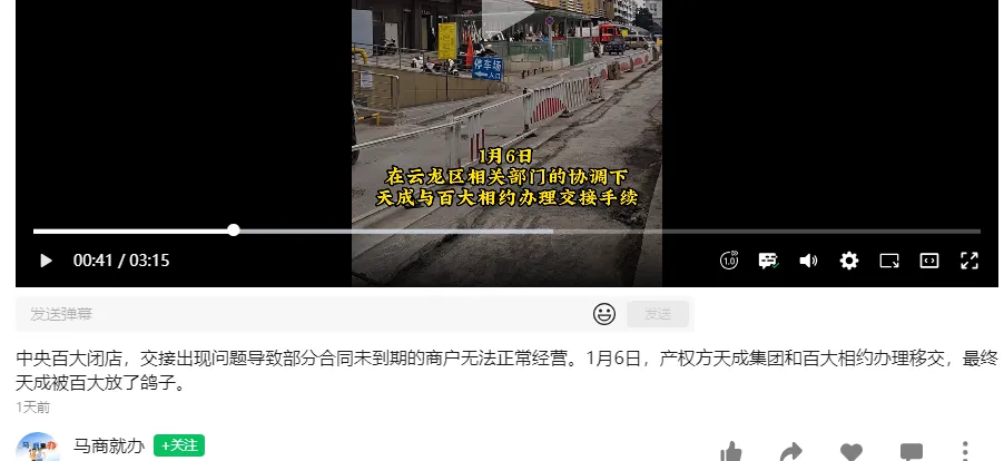 其实早在去年9月份,中央商场就已经透露了要撤退的信号,当时沛县喜润城公众号就曾发布一篇名为《亮个相吧~沛县喜润城——期待与你相见》的文章。这个账号主体就是沛县润隆商业管理有限公司,也就是中央商场的子公司。但是目前又出现了新情况,近日有徐州当地媒体《马商就办》报道中央百大在闭店交接过程中出现问题,导致部分合同未到期的商户无法正常经营。1月6日,产权方天成集团和百大相约办理移交,最终双方却没有见成面。不管怎么样,还是希望双方可以善始善终,好聚好散,尽快解决问题,让商户可以正常营业。也希望,中央商场在沛县喜润城可以大卖!经营的也越来越好!避免失联,欢迎大家关注 “发现徐州”备用号“遇到徐州”