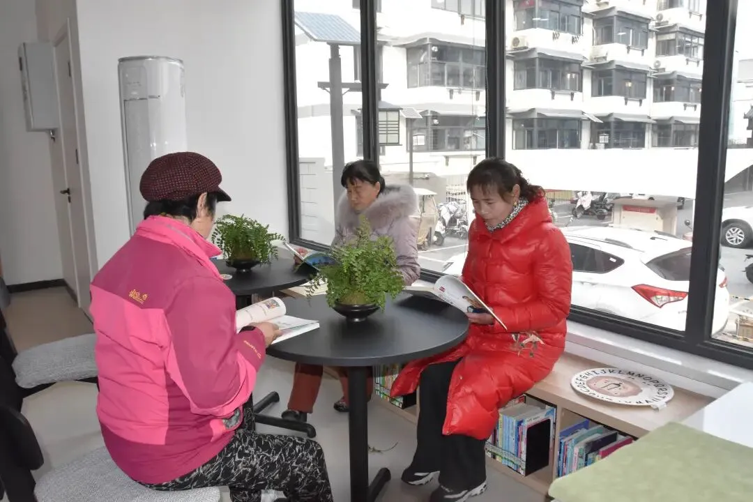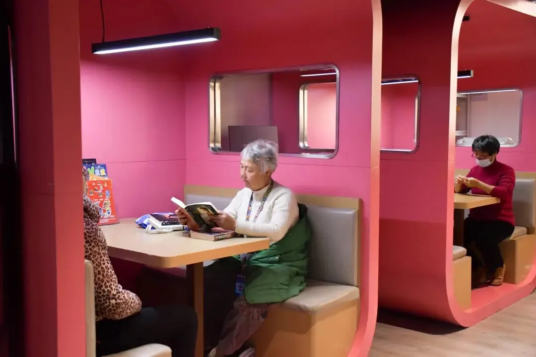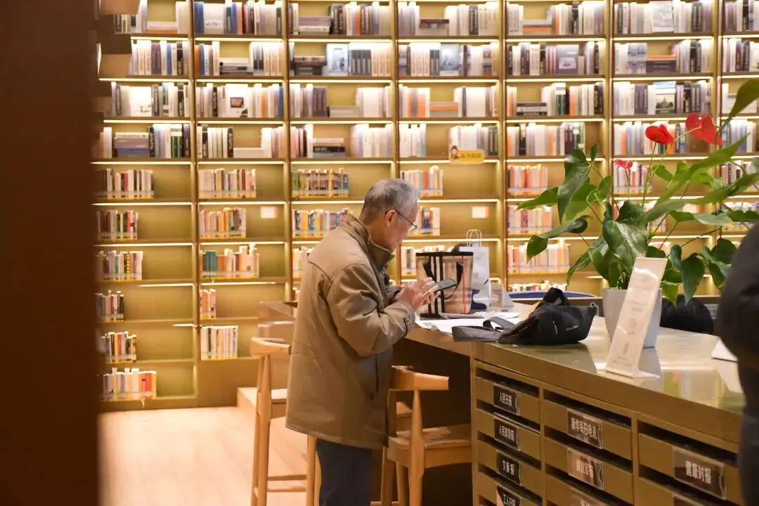 耐心协助不熟悉设备的老人完成借还书流程,帮助老人取下书柜高处的书籍……温馨的助老场景在各馆时有呈现。社区书屋则因规模小、人员熟络,氛围更加融洽,老人们常围坐交流读书心得,其需求也能得到及时回应。