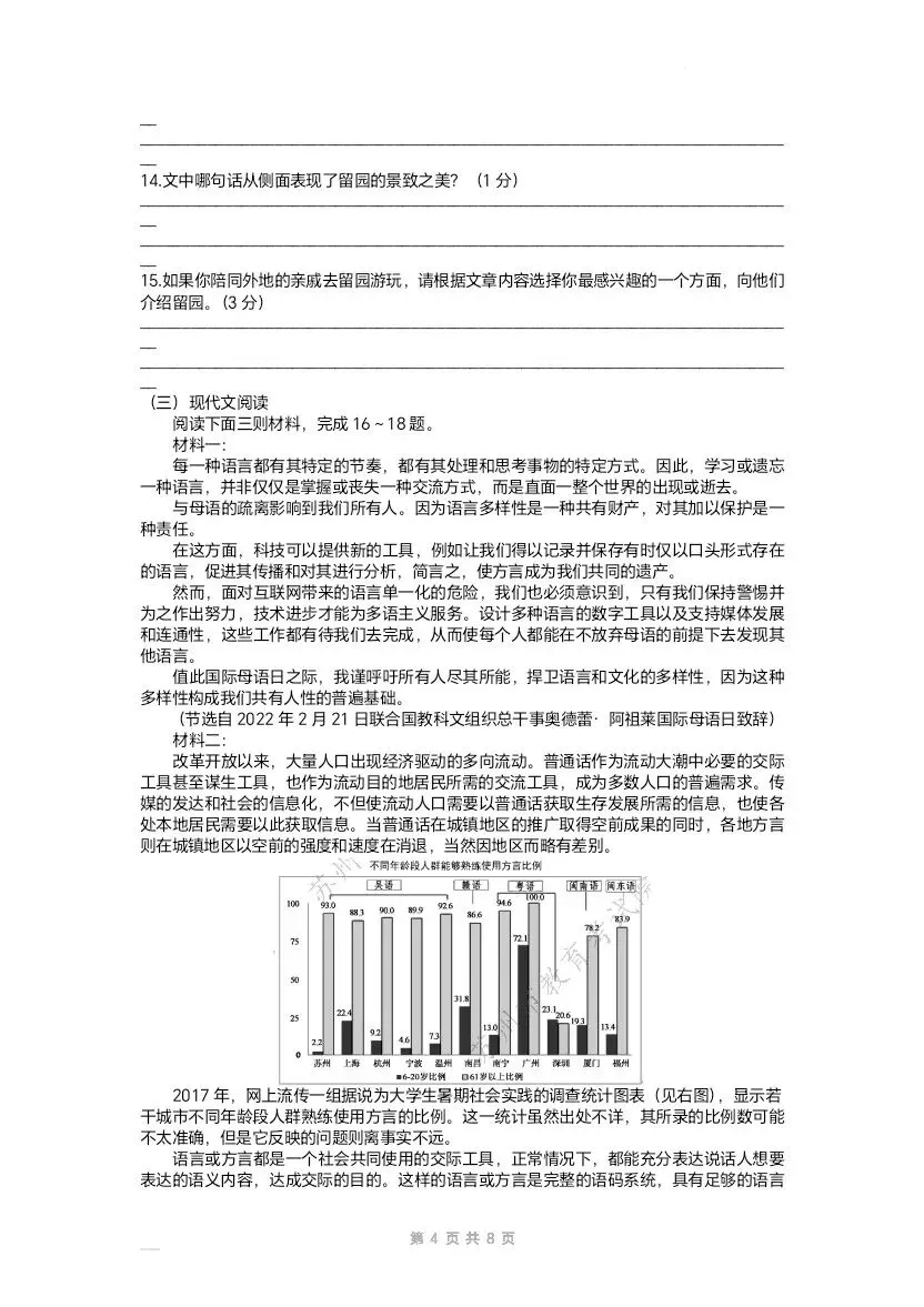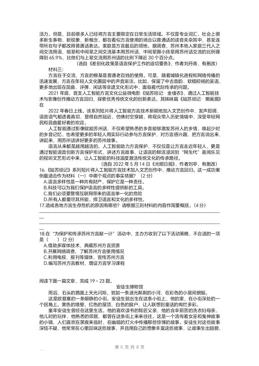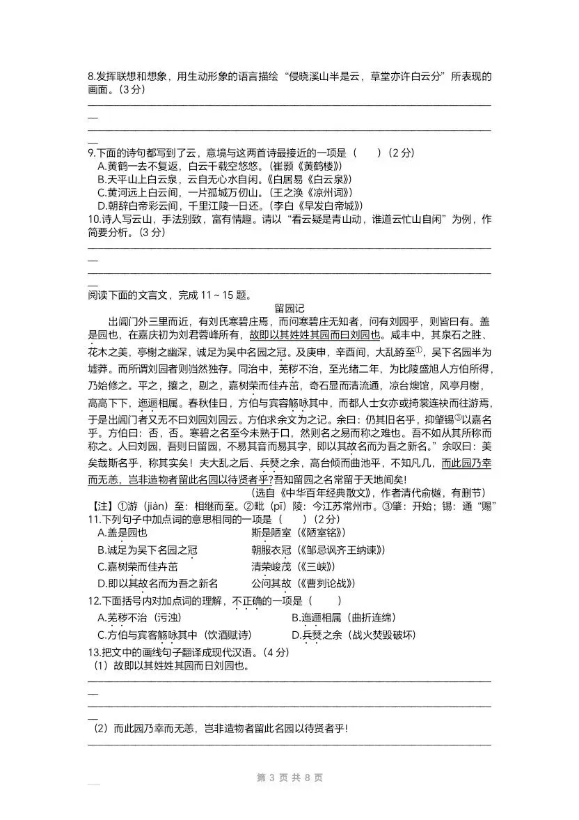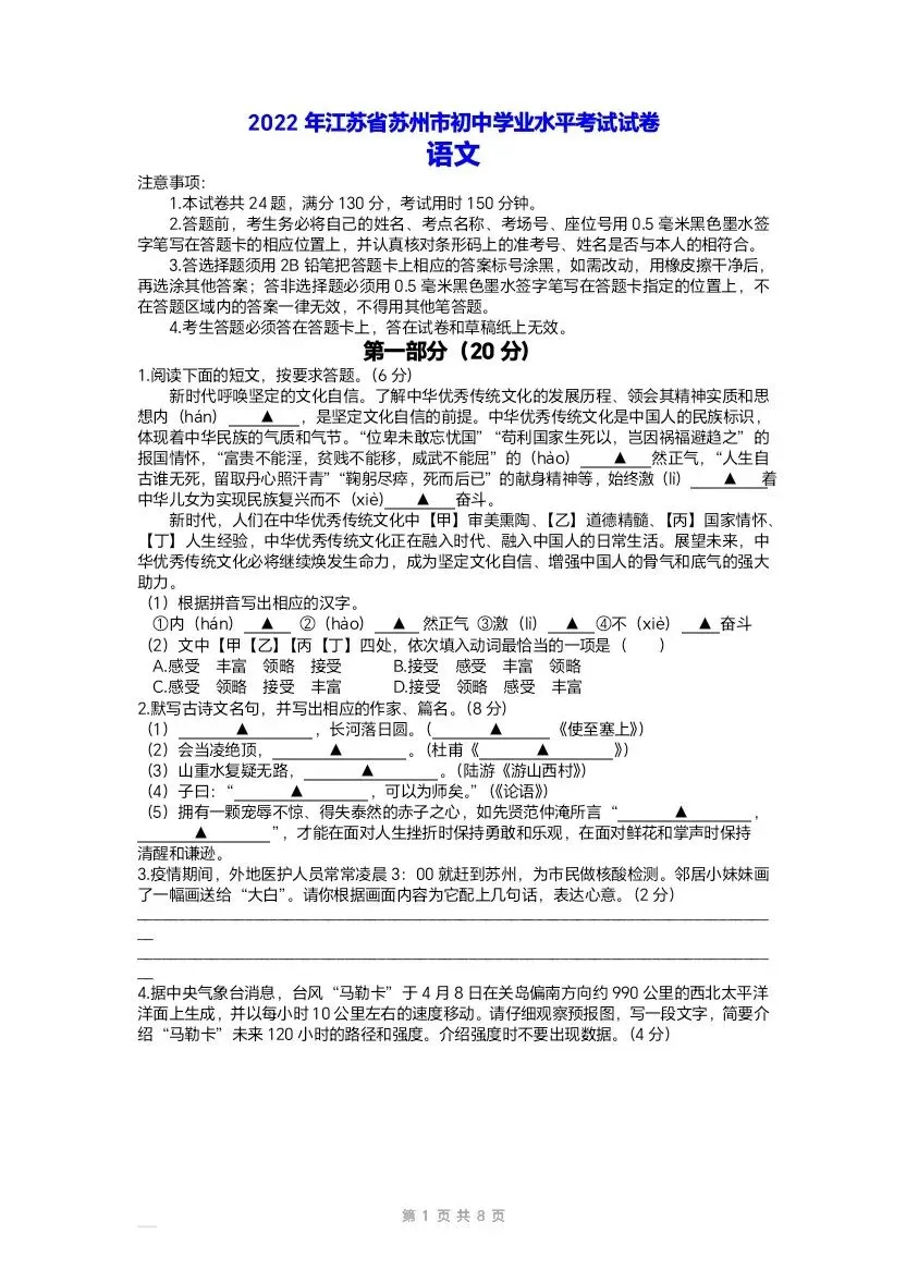 >2022江苏苏州中考语文试卷及答案