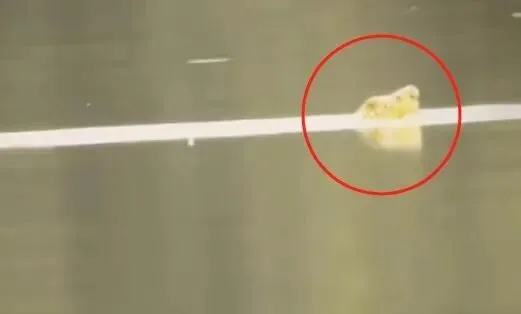 研究人员还拍到过一张照片 , 雌鳖身后好像有另一只斑鳖 , 露出鼻子在换气。