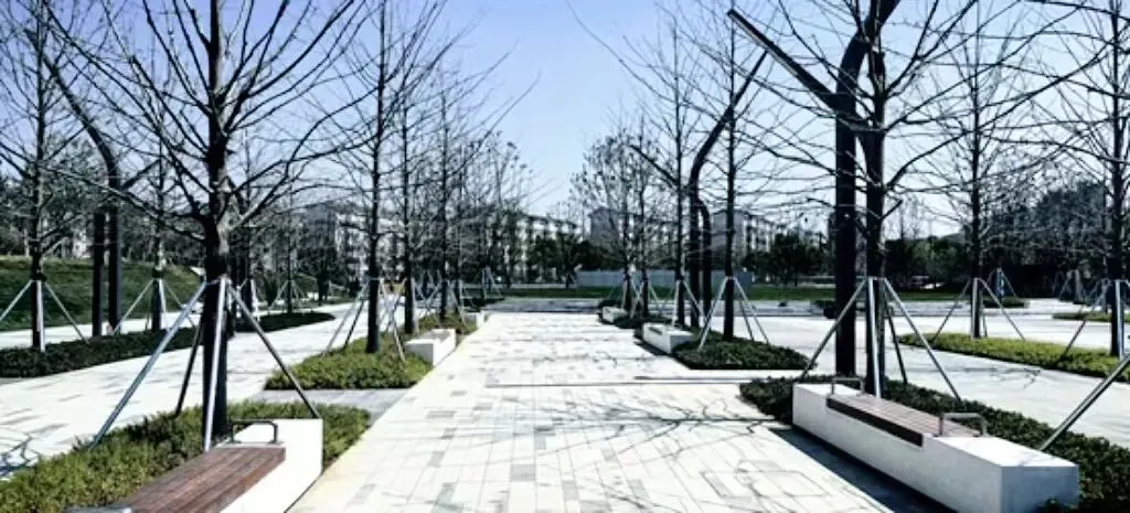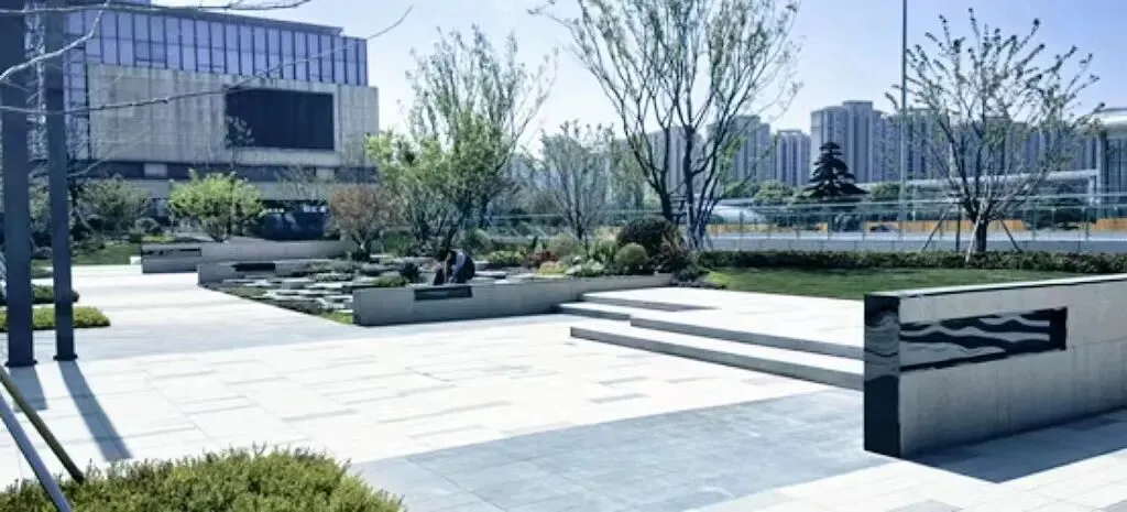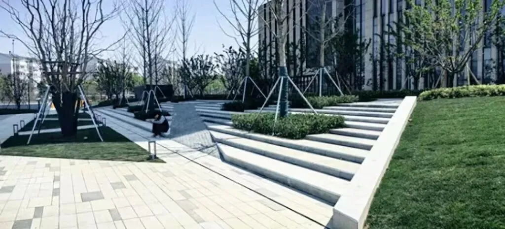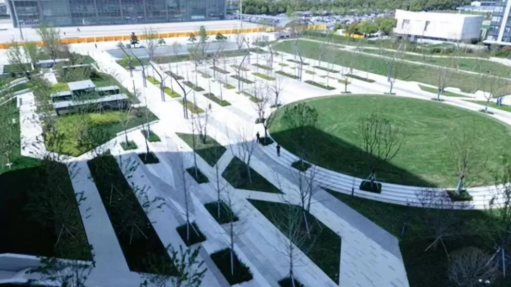 场地通过树阵、草坪、景观步道、景观小品等元素打造开放式休闲绿地,设置多种复合场地,满足各类人群休闲、通行需求;地面通过透水铺装、下凹绿地等海绵设施,打造“会呼吸”的绿色枢纽。△展示台地