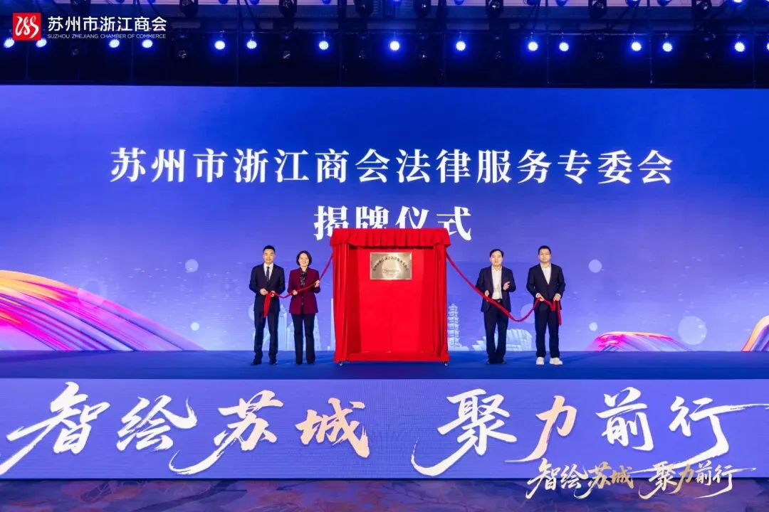为进一步深化会员服务、精准护航企业发展。商会成立“法律服务专业委员会”。苏州市委统战部副部长、市工商联党组书记王蓓蕾,金华市委统战部副部长、市工商联党组书记叶顺清,苏州市浙江商会会长金双龙,副会长、法律服务专业委员会陈德球共同为“苏州市浙江商会法律服务专业委员会”揭牌。
