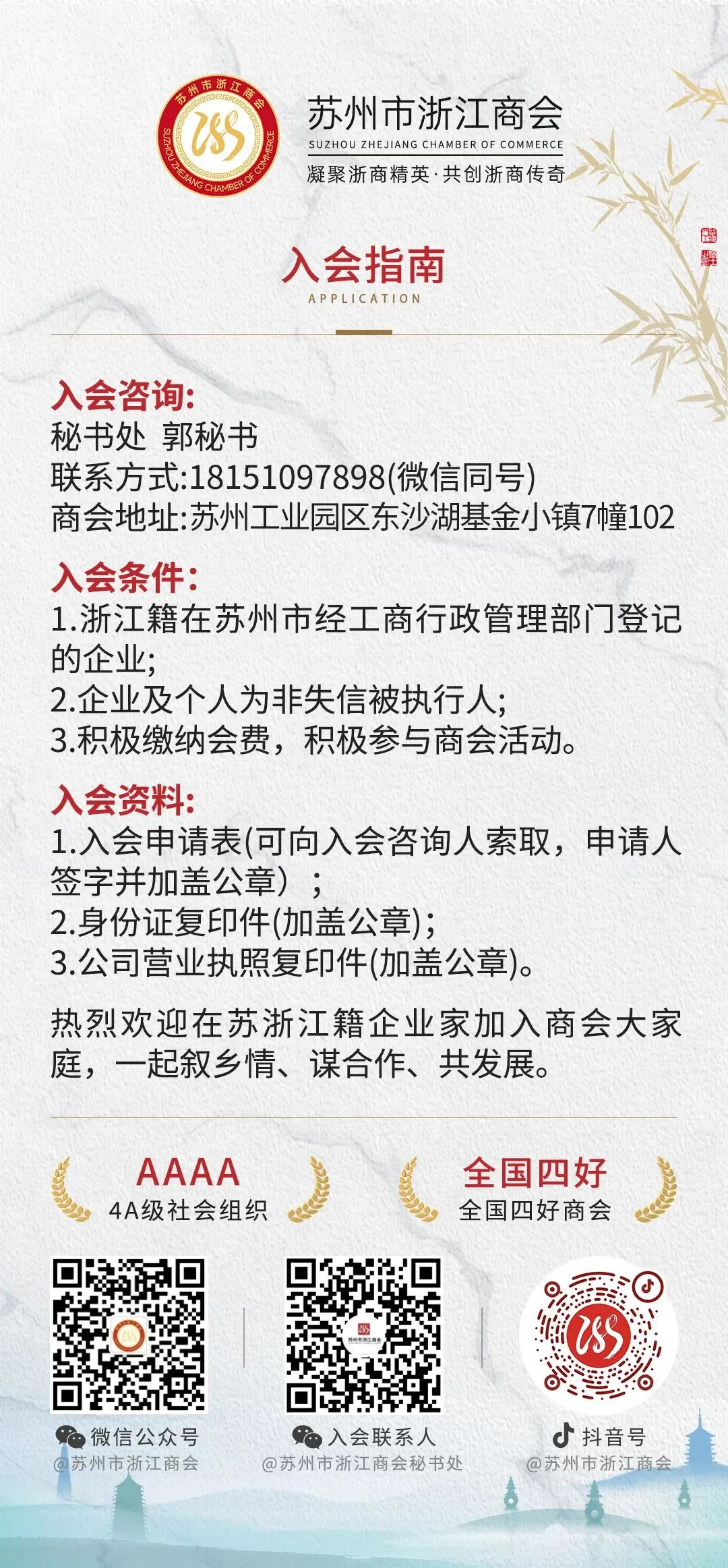 站在新的起点上,苏州市浙江商会将以更加坚定的信念、更加务实的作风、更加创新的思维,团结带领全体会员企业,携手共进、砥砺前行。我们坚信,商会必将为会员企业创造更多的机遇、提供更优质的服务,为推动苏浙两地的经济交流与合作作出更大的贡献!让我们共同期待苏州市浙江商会更加辉煌灿烂的明天!