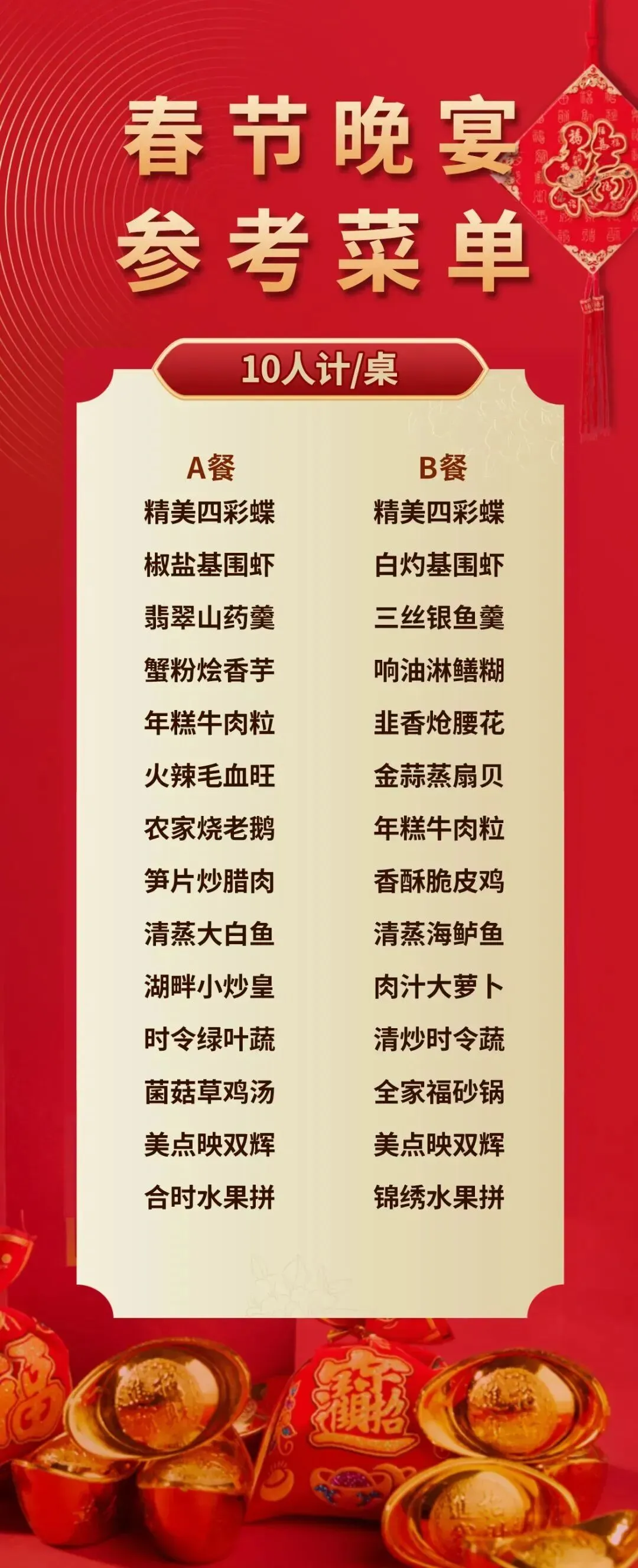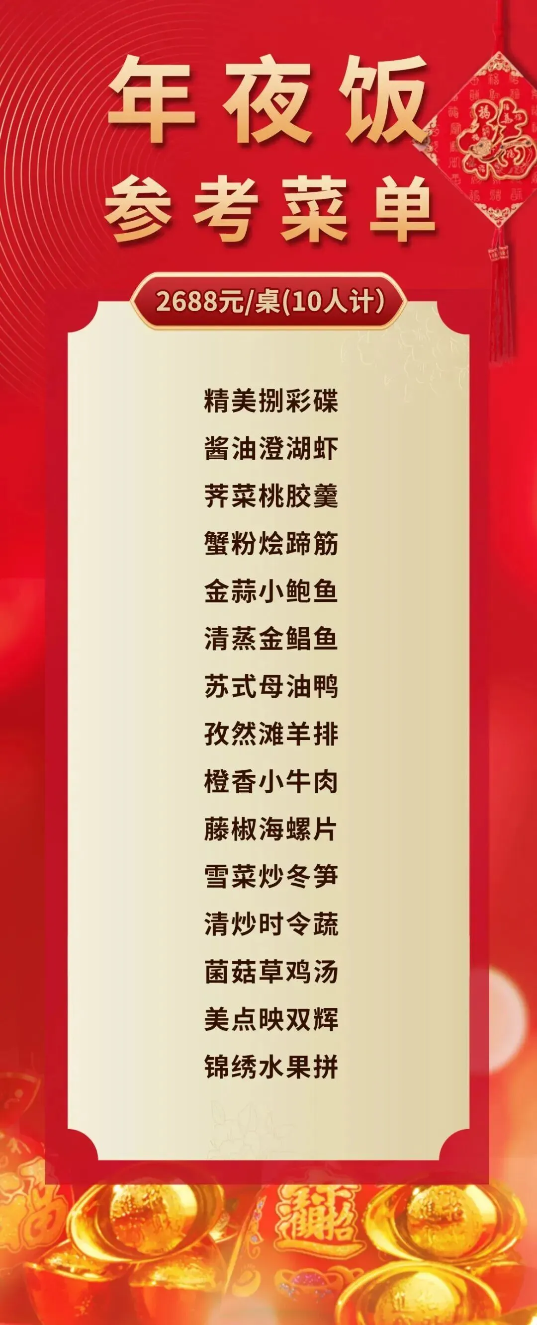 春节班期下单时需补齐相应差价290元/人/3餐(8人安排一桌需补差290元*2人,9人安排一桌需补差290元*1人,以此类推)
