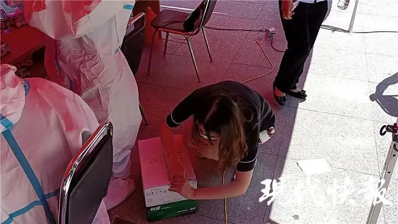 " 天气炎热,我在排队的时候都热得快要受不了,更何况是做检测的医护人员们,他们还穿着防护服,一忙就是大半天,太辛苦了。" 陈女士把一箱水送到现场,立即拆开,方便医护人员在轮岗时饮用。