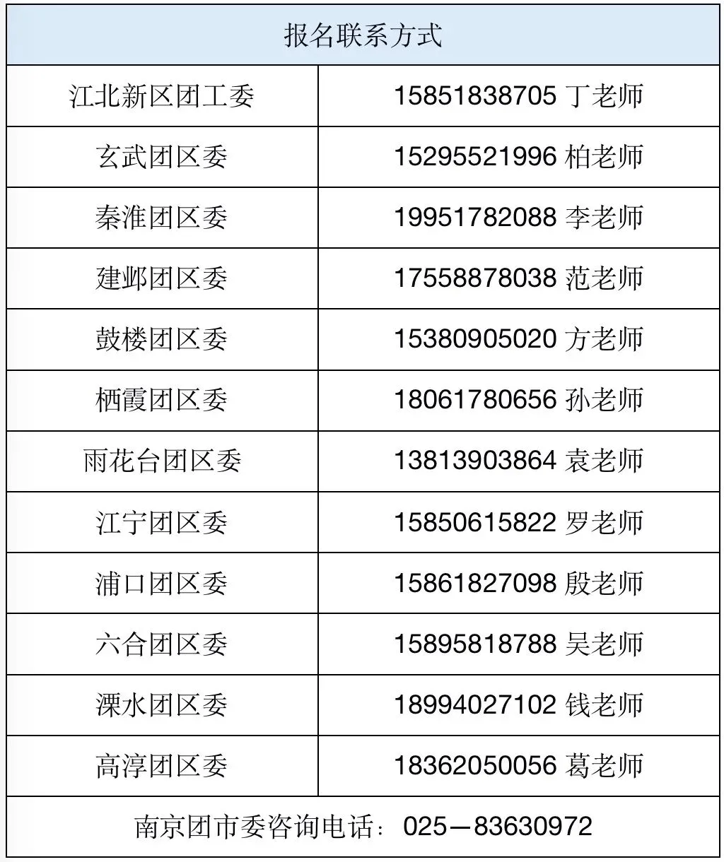 姓名+年龄+单位+住址(XX区+XX街道+XX社区)编辑后发送至居住地所在团区委(江北新区团工委)联系人手机号码;