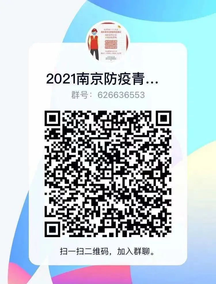 扫描二维码进入“2021南京防疫青年志愿者储备群”