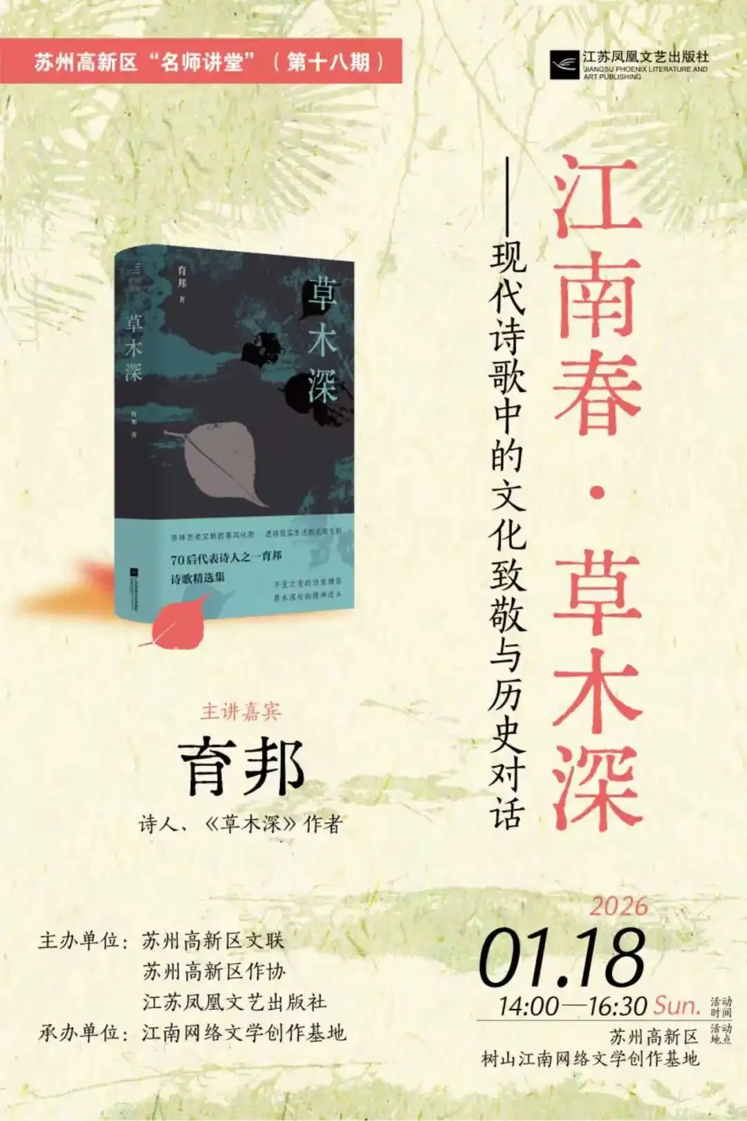 预告 | 苏州高新区“名师讲堂”(第十八期)江南春 · 草木深——现代诗歌中的文化致敬与历史对话