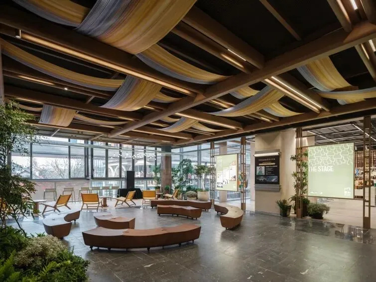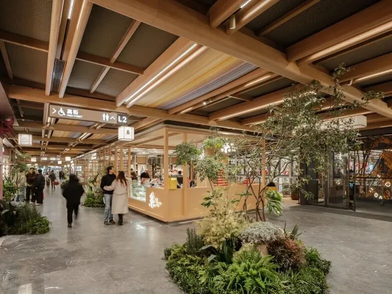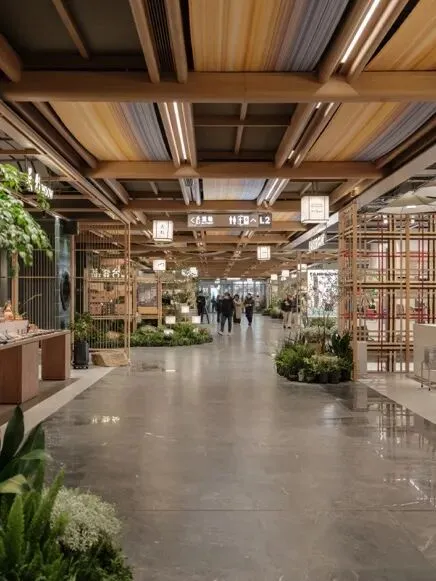 后疫情时代,公众对商业空间的期待已超越单纯的购物消费,明亮精致的环境亦难以完全回应情感层面的需求。我们以“室内空间室外化”为设计主旨,强调自然、松弛与可游可逛的空间特质。通过模糊室内外界限、打通垂直视觉,我们试图重塑一幅“登台”版的当代姑苏繁华图卷,愿每一位步入其中的人,皆能在此感受到生活之美好。