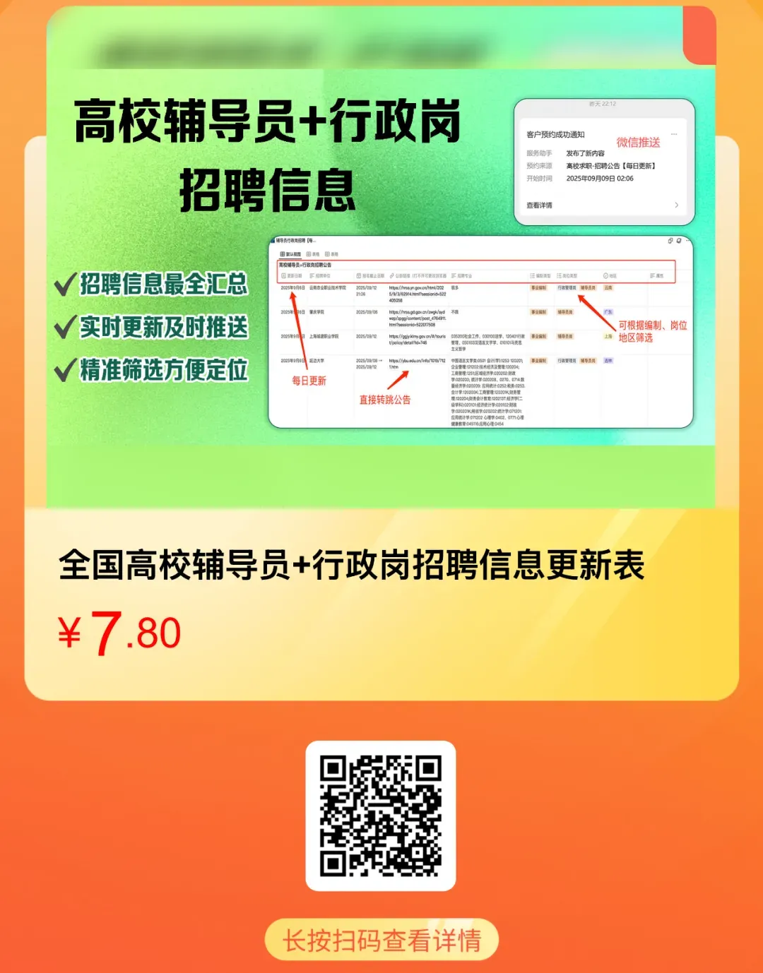 兼职辅导员(B类):全日制在岗,完成学校和学院所要求的各项学生工作;独立带学生达到100人;能开展有亮点和特色的模块化工作。