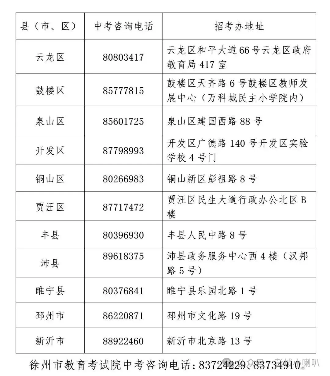 答:请考生及家长关注“徐州市教育考试院”微信公众号、徐州市教育考试院网站(http://www.jsxzeea.cn),有关中考报名、考试、志愿填报、录取等信息会及时发布。