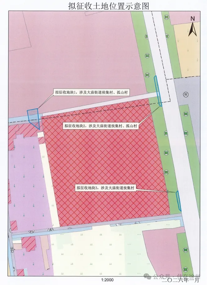 继2026年元旦前后发布4个征地公告后,昨天,经开区更是在一天连发12条征地公告!涉及大庙街道侯集村、李井村、官庄村、安然村、孤山村、后姚村、前姚村;大黄山街道西朱村、大黄山村、狼古墩村、王可乐村;金龙湖街道上山社区、沈店社区,共3个街道13个村(社区),征地面积共约63.285亩!征地目的都是由政府组织实施的交通基础设施类建设需要用地。本次拟征收土地位于大庙街道侯集村范围内。拟征收土地位置详见附图。