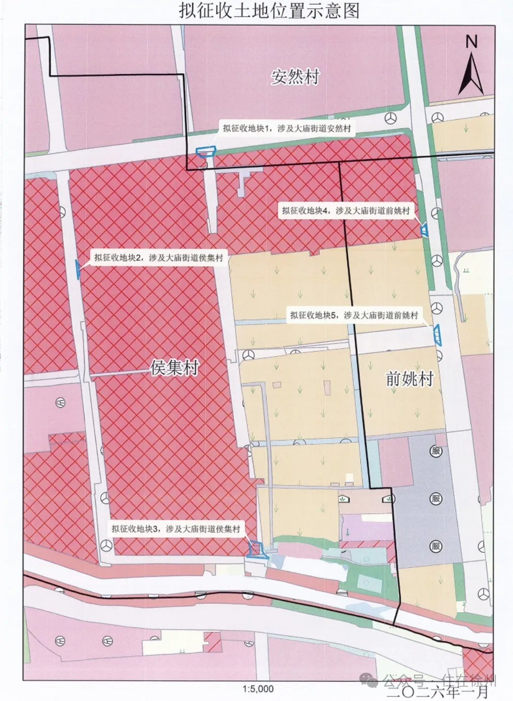 大庙街道前姚村、安然村、侯集村,拟征收3.414亩本次拟征收土地位于大庙街道前姚村、安然村、侯集村范围内。拟征收土地位置详见附图。实际征收土地范围以最终批准文件为准。