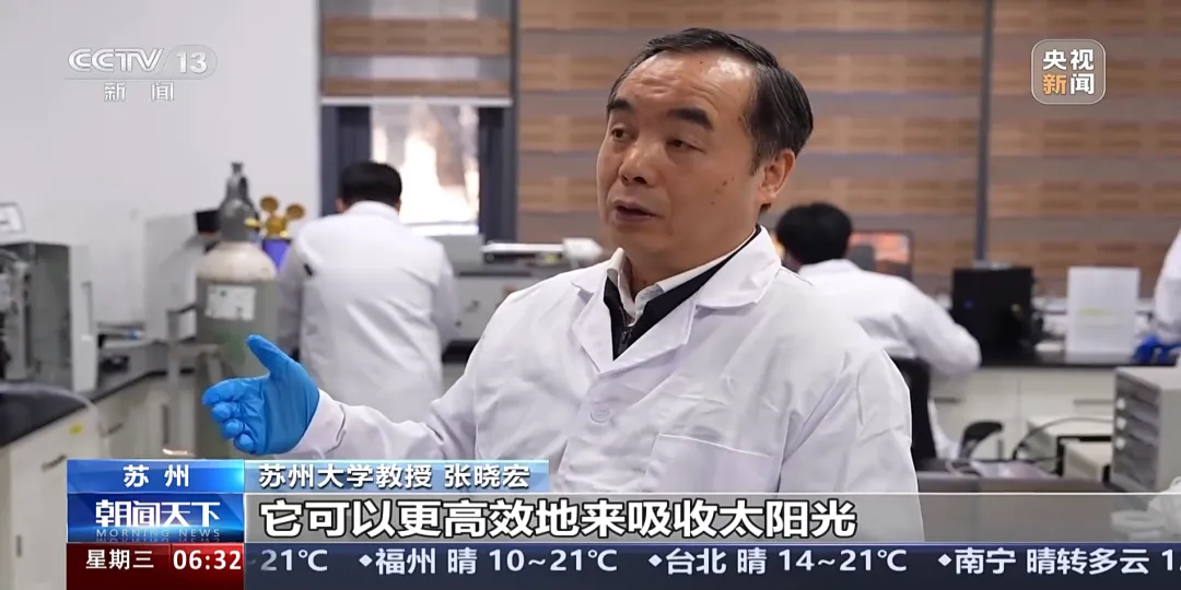 张晓宏教授介绍,叠层柔性电池将传统的晶硅和钙钛矿两种材料叠在一起,能吸收比单结电池更广泛的太阳光能量,更高效地将太阳光转化为电能。目前,太阳能光伏电池广泛应用于航天器,由于太空环境中无法接入任何地面电网,光伏供电已成为支持航天器和太空数据中心长期运行的必然选择。该成果为柔性光伏技术的大规模应用奠定了科学与技术基础。