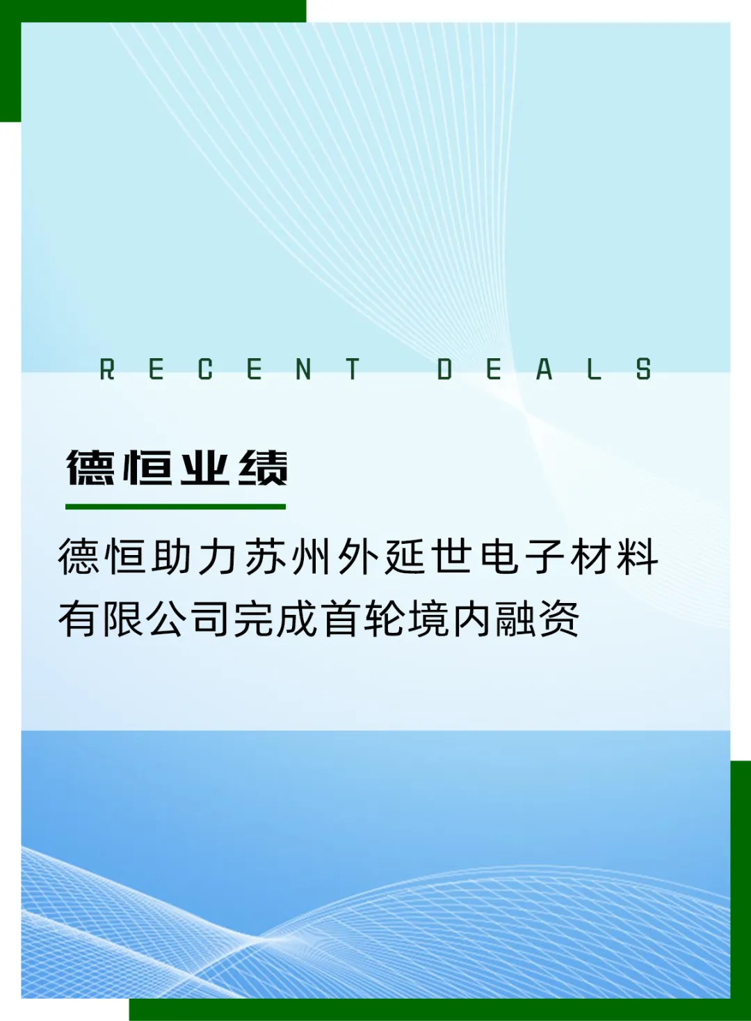 近日,德恒上海办公室(以下简称“德恒上海”)成功协助苏州外延世电子材料有限公司(以下简称“苏州外延世”)完成首轮境内融资。元禾原点、毅达资本等知名机构会同战略资源方共同为苏州外延世在泛半导体领域持续开展技术研发与产业升级提供强力赋能。