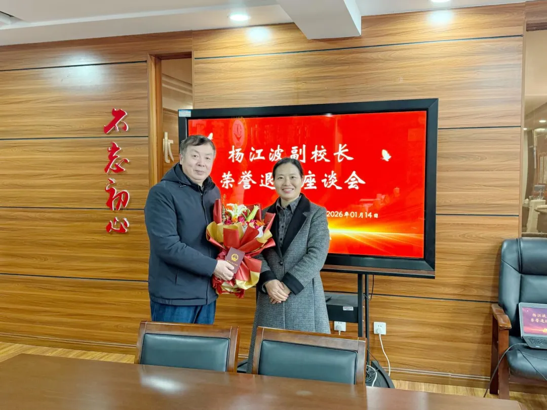 2026年1月14日下午,徐州市西苑中学校务本楼四楼会议室内暖意融融,“致敬耕耘岁月,传承教育初心——杨江波副校长光荣退休座谈会”在此温情举行。校党政工领导班子成员、工会委员、校办及党办主要负责人齐聚一堂,共同为深耕教育事业39载的杨江波副校长送上敬意与祝福。