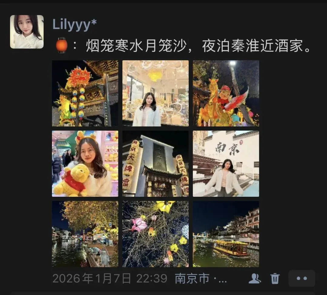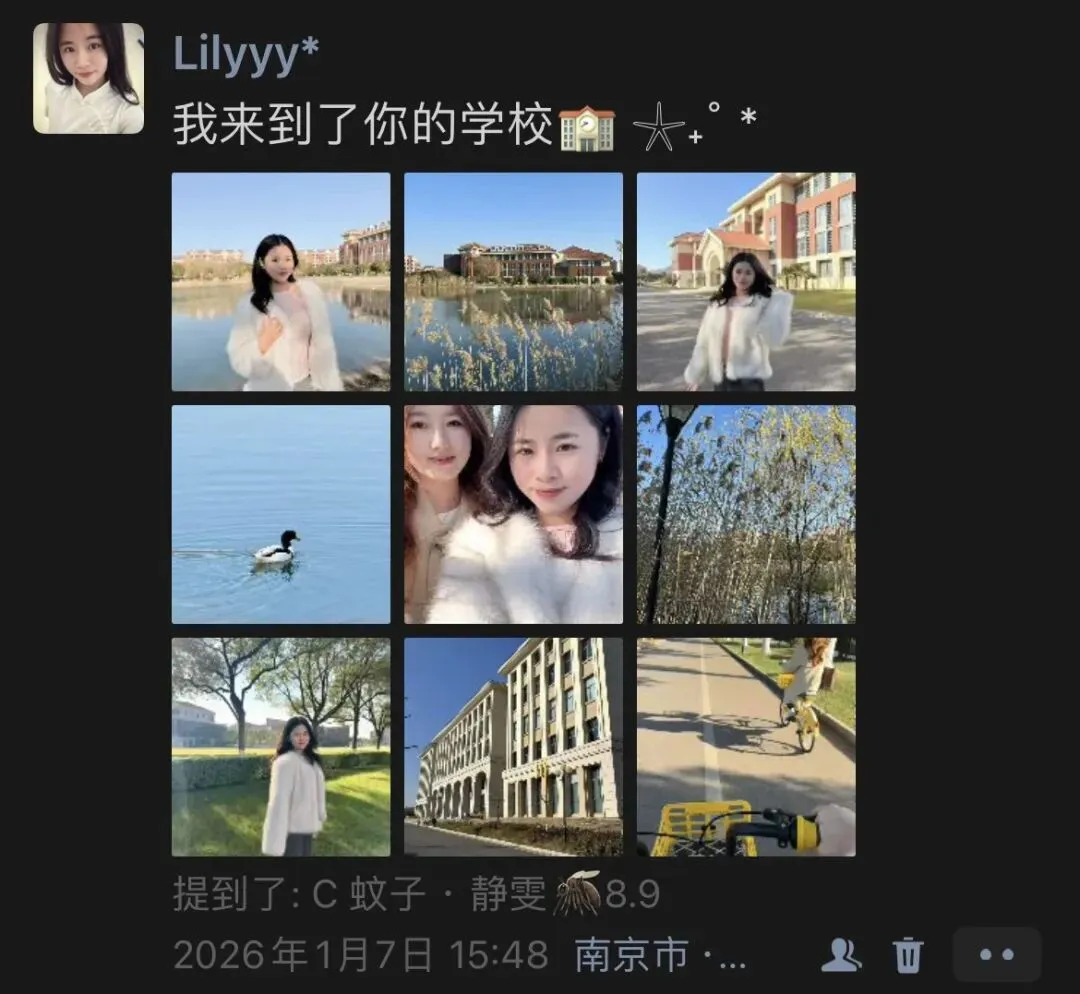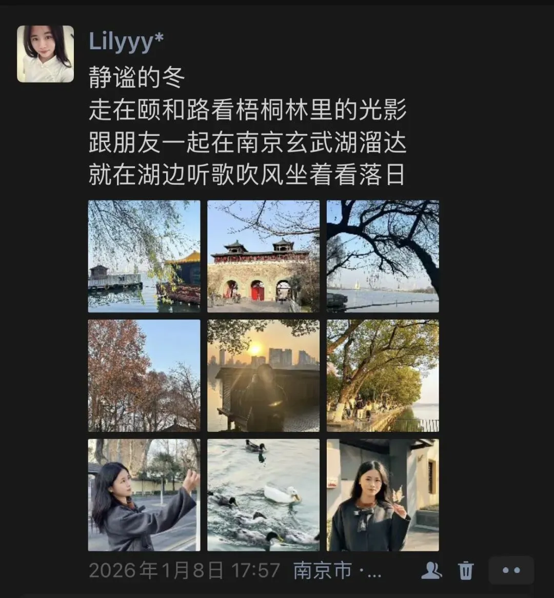 在北京旅行完之后,就来到了济南,济南的冬天我没有逢上雪,就在济南站附近溜达了一圈,尝了附近的美食。济南站的阿水大杯茶听站口的当地人说还不错,便尝了一番~感觉还行,料都蛮真实的🤣原本还想沿着附近逛逛,但是属实当下天气和身体有点疲惫就没有接着逛,解决了晚饭和周边逛逛,喝了好几瓶水/饮料,补充水分就完结了。不知道为什么这一躺旅行发现自己的身体极具缺水,超级无敌口渴,跟水牛一般~从北京到济南,辗转到南京。跟初中好朋友会面了,来到南京不知道吃点啥,就以鸭血粉丝汤三件套作为第一餐开启了我与南京的故事,感觉有点咸口,但是总体味道是真的蛮不错滴~我把一碗吃完啦,可能因为份量没有特别多,老板娘说不够吃还可以免费续,但是这个量对于女生好像确实一碗足矣了。吃鸭血粉丝汤期间,跑到淘宝闪购立马下单了999抗病毒口服液和感康以及红霉素软膏(凑单),害怕身体吃不消,昼夜温差大,喉咙口渴干干的,还在高铁上买了润喉糖,“贵🐁啦~”等蚊子从学校来到南京南站后,我们两个捣鼓完,就一起去新街口闲逛解闷,买饮料小零食,蚊子还带我试了她最爱的南瓜面包🥖🎃,确实软软糯糯的😋。非常不错,晚上回去路上到便利店购买了小零食夜宵,感觉南京好多“十足”便利店…好像也是连锁的。谁懂从新街口回来,我还要拿着好朋友的电脑敲打论文,进行预答辩后的小修改呀~还好问题没有特别特别多,不然我是真的要晕乎了啊!但是还有一个关于需要表格的问题我还没有完善,因为搜索数据需要一个相对安静的环境以及平静的内心,所以我还是等导师妈妈把我的论文打回来,我再修改修改🥹‼️。于是,就这样我抱着蚊子的电脑,我们有了新的合照!情比金坚的十年,我来到了南京。闲暇ccd