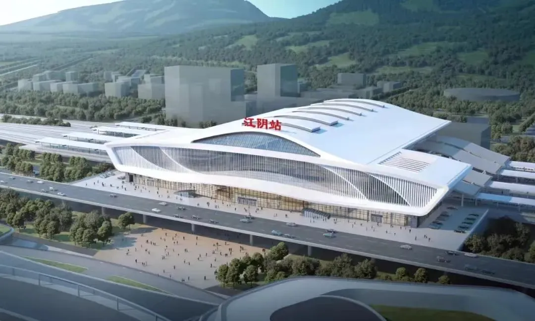 江阴站是沪宁沿江高铁面积最大的站房,设计方案采用“江尾海头、巨轮启航”的理念,凸显江阴独特的人文气质。