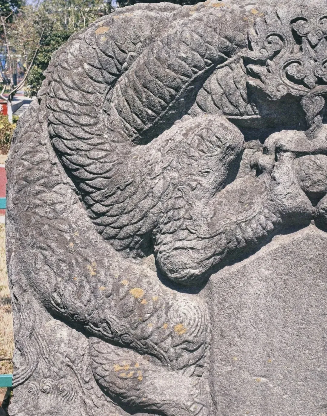3. 龟趺与碑额:龟趺(赑屃)承载着残碑,象征长寿与稳固,侧面角度拍摄,能突出其厚重感和祥瑞寓意,适合古风滤镜。