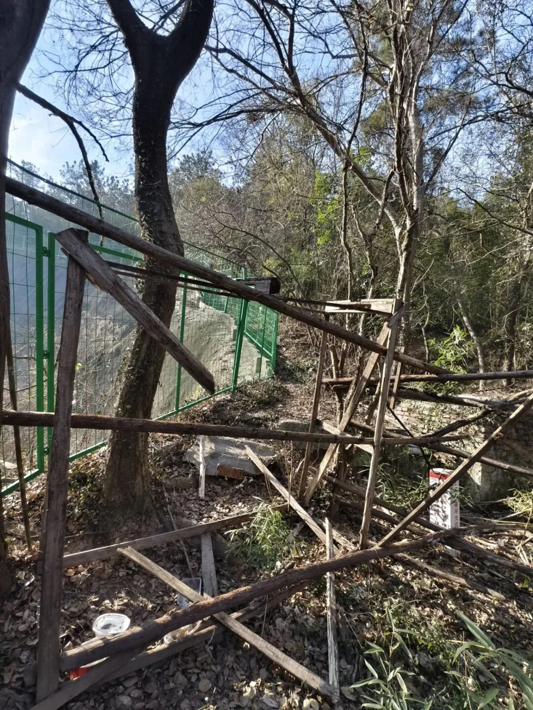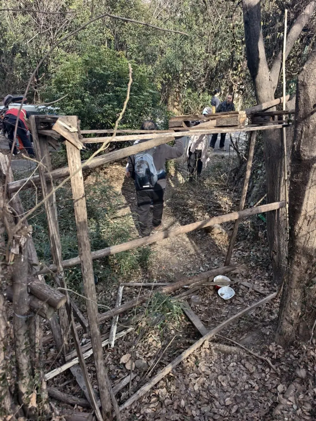 看到这个牌子后,穿过废弃木架,往右走~