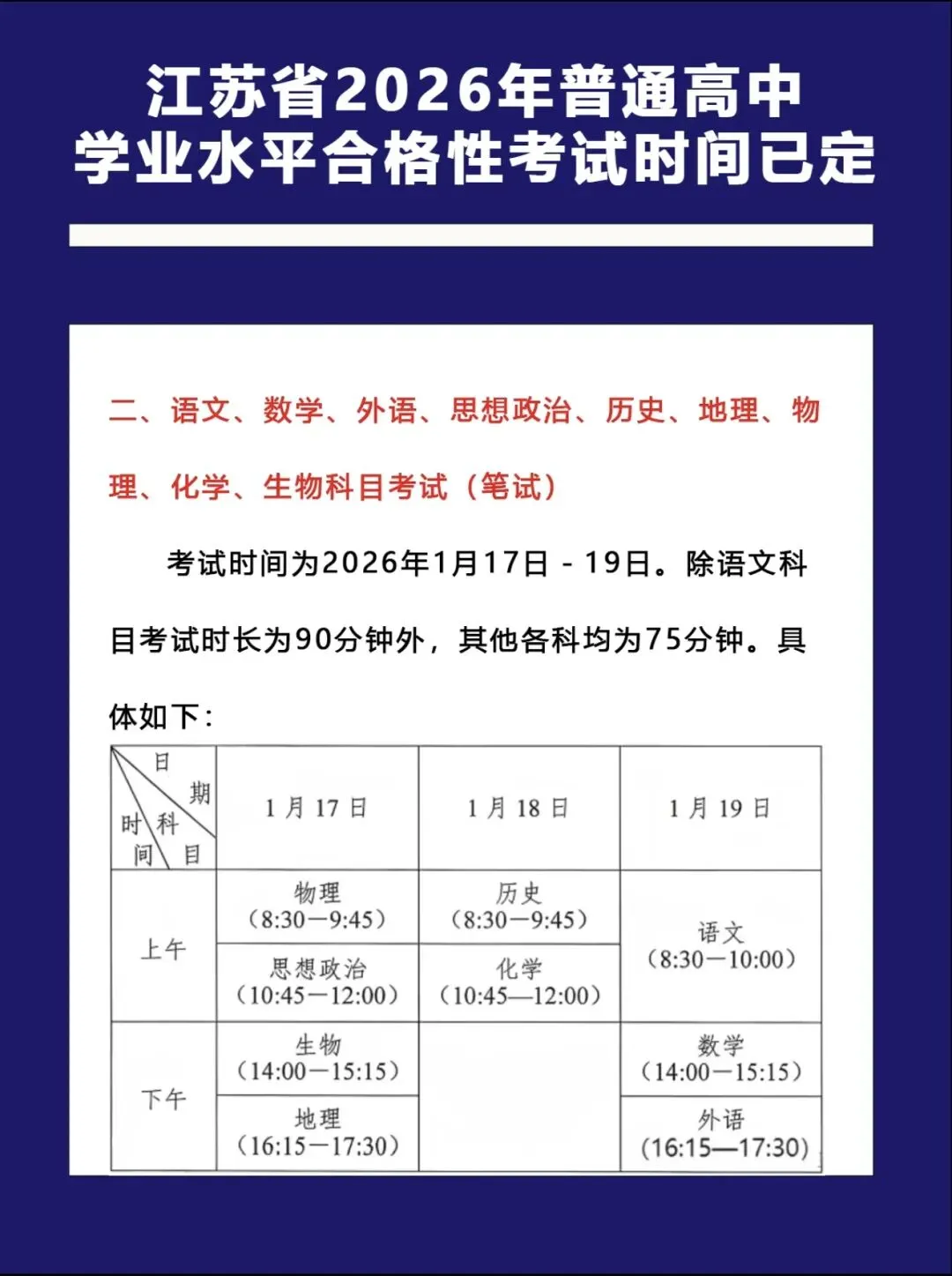 小高考高二考6门,周六周日考