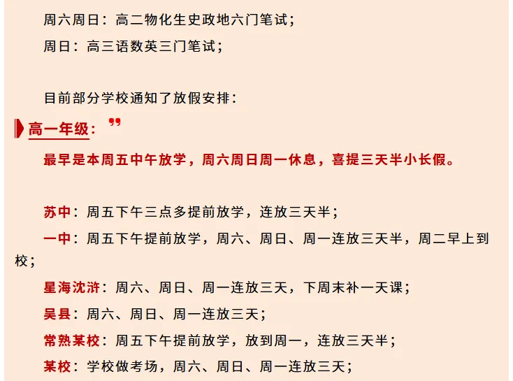 高二考完有的放半天、有的放一天半