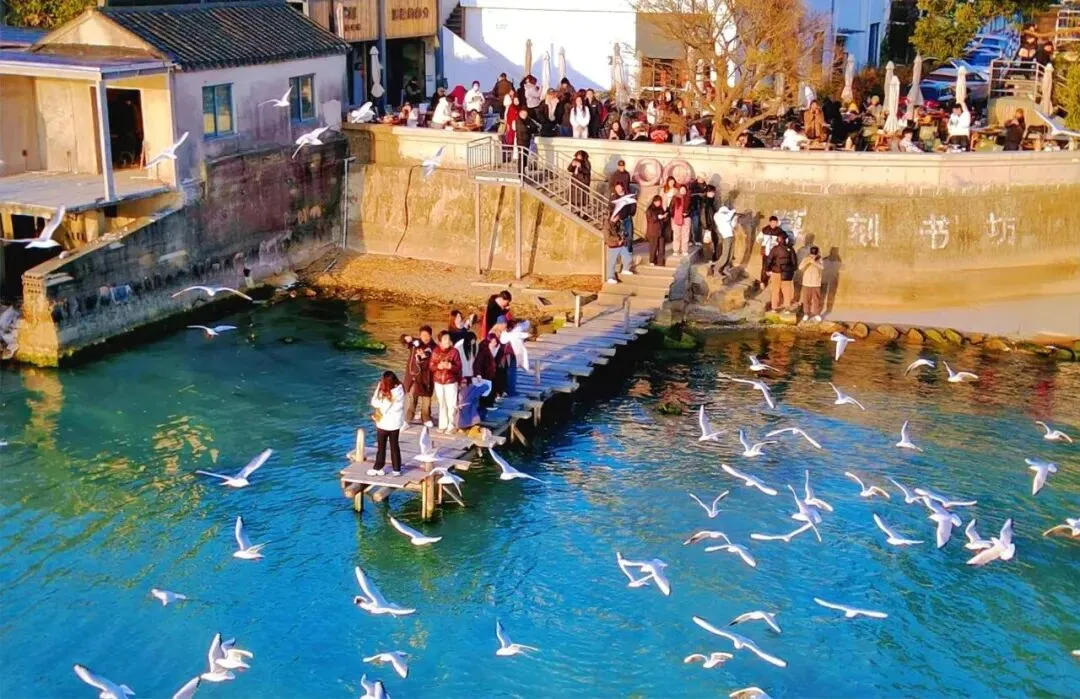 慕刻书坊沿湖边,木栈桥出片,坐在湖边喝喝咖啡看湖景看鸥群飞舞,背景是湖水与远山,惬意~冲山岛灯塔延伸出一条一公里长的堤坝,走到尽头就是灯塔,视野开阔海鸥群多,游船和帆船的造景还有远处的山,诗意满满,灯塔出片~石壁永慧禅寺是苏州太湖边观赏红嘴鸥的绝佳地点,冬季(12月至次年3月)成群红嘴鸥从西伯利亚飞来越冬,在湖面翩跹起舞,与古寺构成诗意画面。站在禅寺外的观景平台既能感受古刹的宁静祥和,又能欣赏红嘴鸥在湖天之间自由翱翔,暮鼓晨钟声中看飞鸟与禅意相融,别有一番意境;
