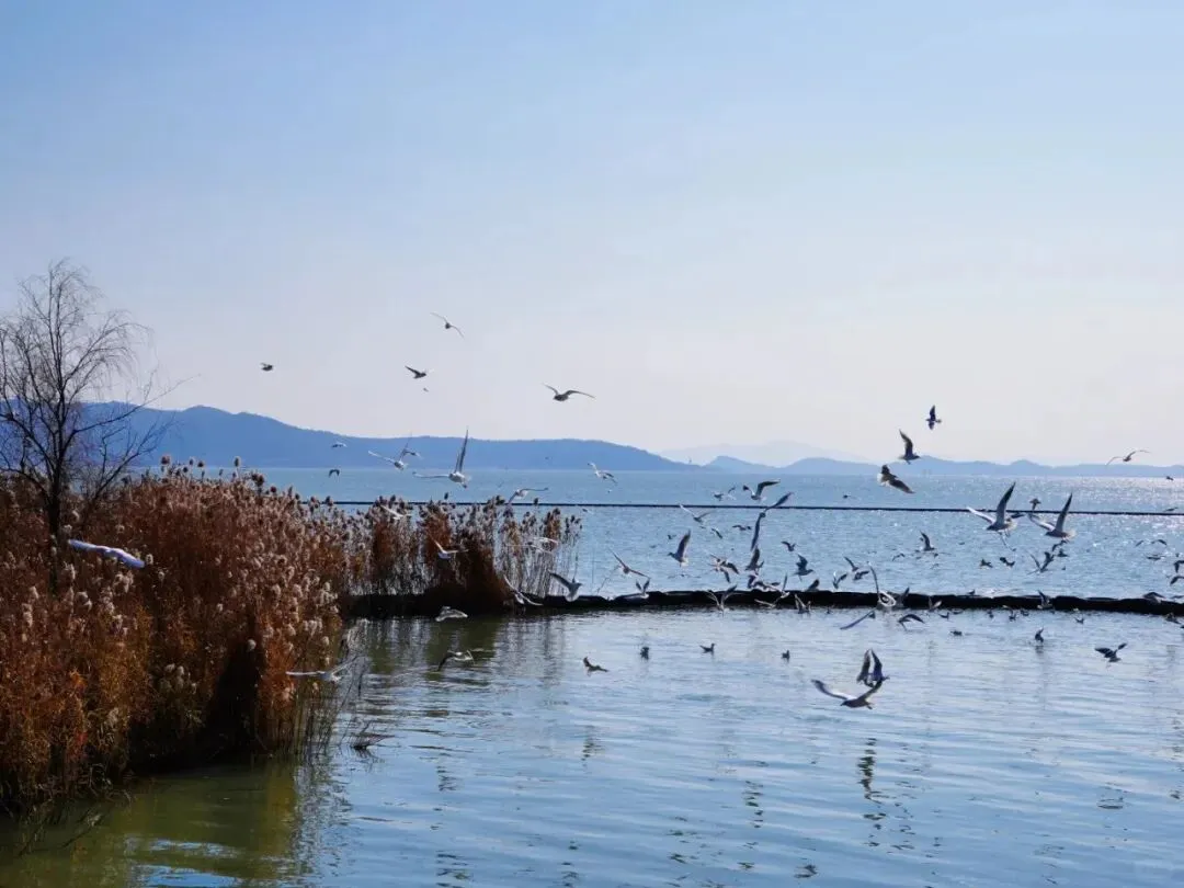 这个时候,最适合去波光粼粼的太湖,一边晒着暖融融的太阳,一边欣赏翩跹而来的飞鸟,写意得仿佛在洱海度假……