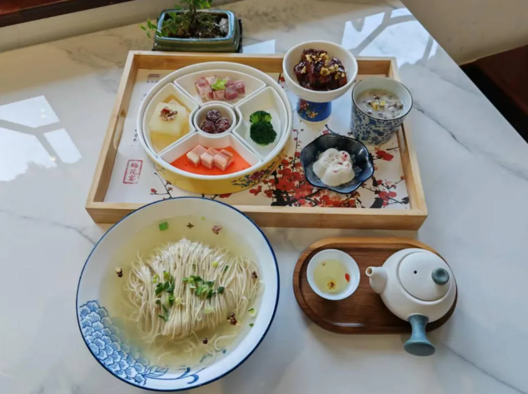 无锡鸡汤银丝面是无锡传统面食的代表,以面条细如发丝、色泽洁白如银而闻名,汤底用老母鸡慢熬数小时,鲜香浓郁,口感顺滑。