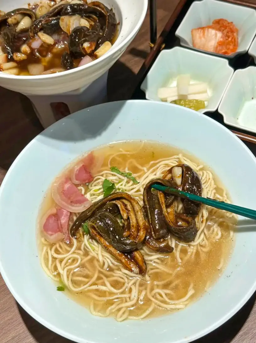 苏式汤面制作技艺入选非遗,让一碗面不仅有烟火气,更承载着深厚的文化底蕴。苏式汤面曾以518种浇头创下世界纪录,这次更是拿出了浓油赤酱与河鲜本味融合的焖肉面、爆鳝面;传统苏式浇头与创新鱼面结合猪肝面、松鼠桂鱼面;时令鲜味与特色蟹粉的三虾面、秃黄油面;现炒浇头与经典炸物搭配的三丝炒浇面、现炸大排面;非遗技艺传承的红汤爆鱼奥灶面、白汤卤鸭奥灶面。