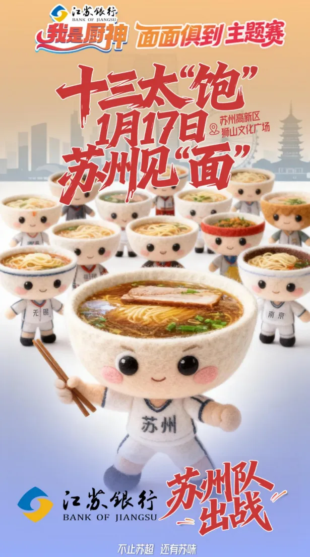 江苏银行“我是厨神·面面俱到”主题赛暨“百县千味”寻味苏州活动,全省十三座城市,各派顶尖面食高手,携带看家本领,齐聚苏州,现场烹制最能代表城市味道的那一碗面。