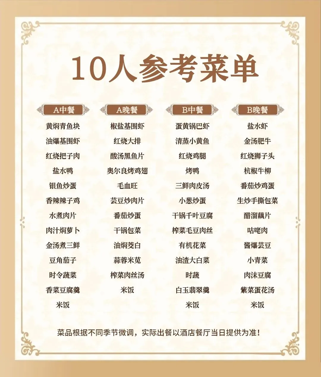 3.菜品以实际到店为准,严禁带熟食进入餐厅,严禁携带宠物进入酒店!