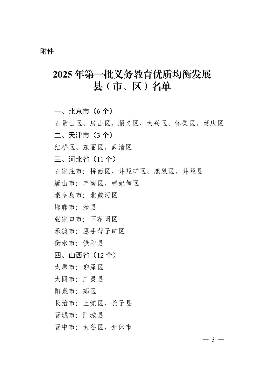 近日,教育部发布《关于公布2025年第一批义务教育优质均衡发展县(市、区)认定结果的通知》: