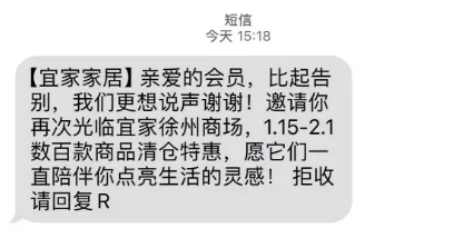 亲爱的会员,比起告别,我们更想说声谢谢!邀请你再次光临宜家徐州商场,1.15-2.1数百款商品清仓特惠,愿它们一直陪伴你点亮生活的灵感!宜家这次发的短信,像极了分手时保持体面的恋人,今天距离它闭店还有16天。