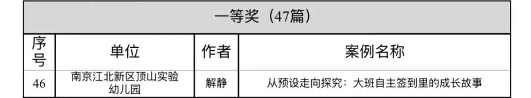 喜报!热烈祝贺南京江北新区顶山实验幼儿园解静老师在江北新区幼小衔接案例征集评比活动中获一等奖!