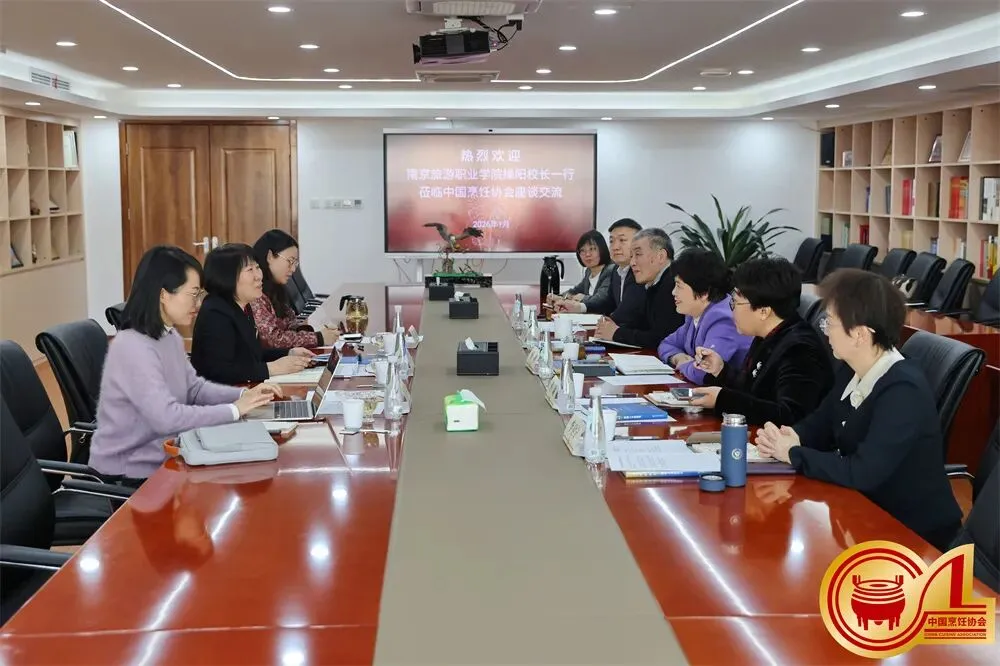 1月15日,南京旅游职业学院操阳院长一行专程到访中国烹饪协会,双方围绕学院发展、数字资源库共建、职教出海路径探索、特色教材体系开发以及中餐国际化人才培养项目推进等核心议题展开深度座谈交流。中国烹饪协会会长杨柳,副会长兼秘书长佟琳、副会长乔杰出席座谈会,为双方合作发展凝聚共识。