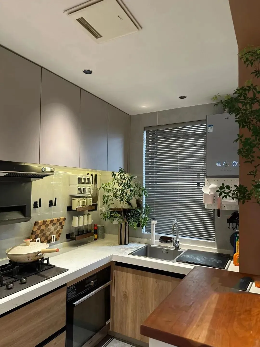 窗边还特意摆了绿植,做饭时抬头能看到一抹生机,整个人心情都明亮起来。